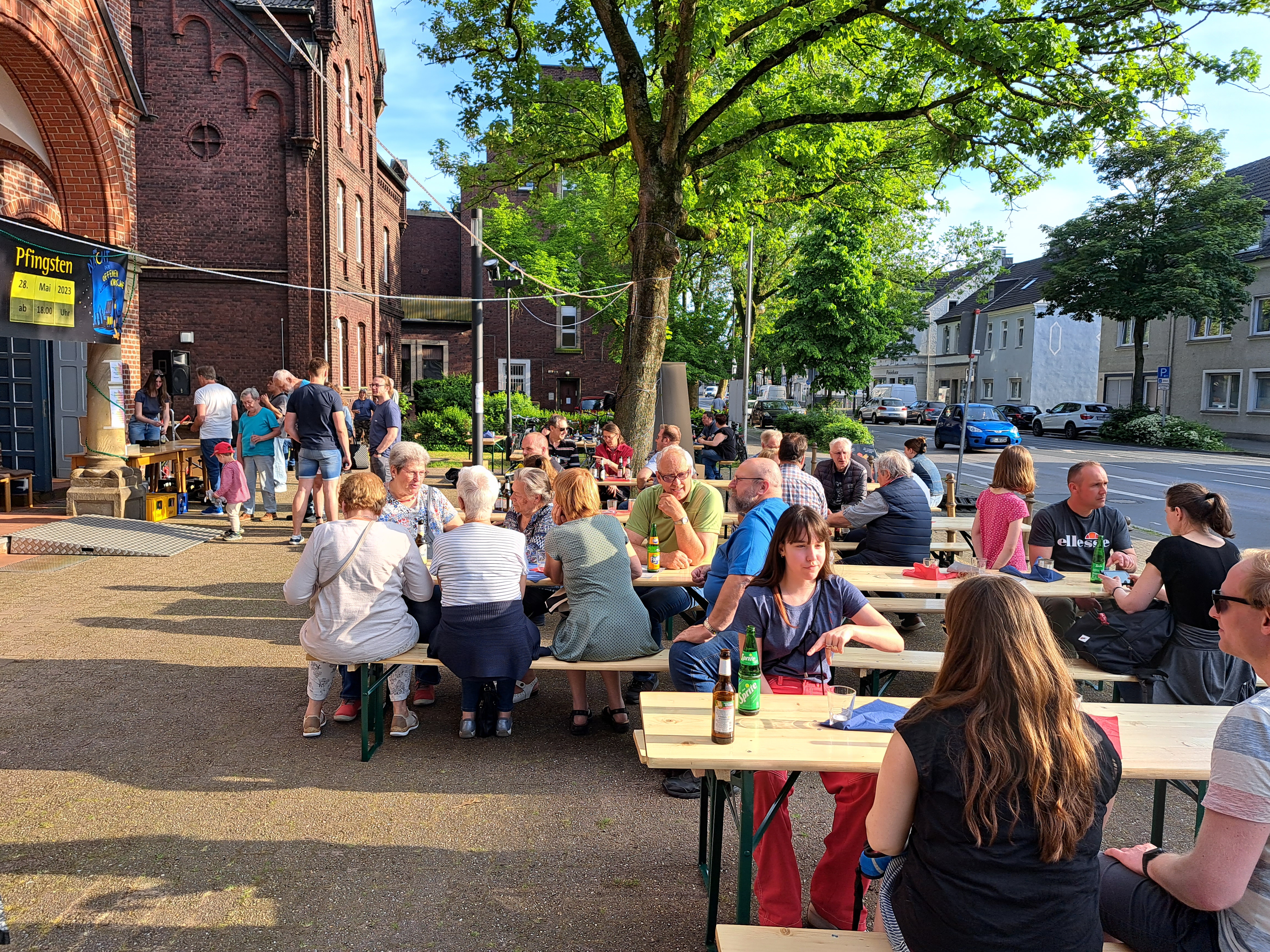 Rund 230 Menschen haben sich in und um die Lutherkirche versammelt und gemeinsam einen gemütlichen, schönen und musikalischen Abend genossen. Ca. 10 junge Ehrenamtliche der ev. Kirchengemeinde und sogar eine Konfirmandin haben Getränke verkauft, Würstchen gegrillt und die Technik der Band betreut.