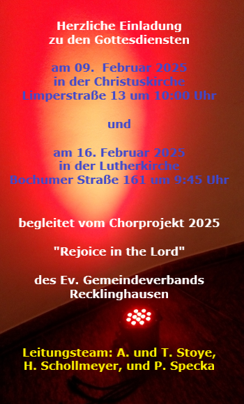 Um 18 Uhr in der Lutherkirche an der Bochumer Str. 163 in Recklinghausen-Süd.