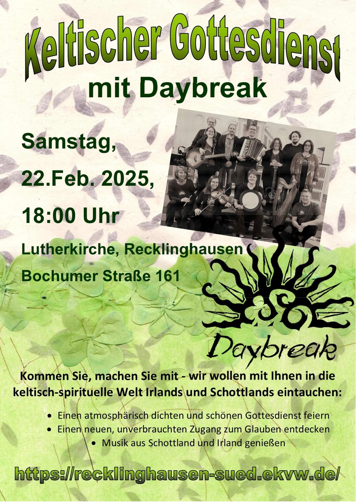 Kommt vorbei wenn ihr mal einen besonderen Gottesdienst mit irischen/schottischen Klängen erleben wollt! Jeder und jede sind herzlich Willkommen.