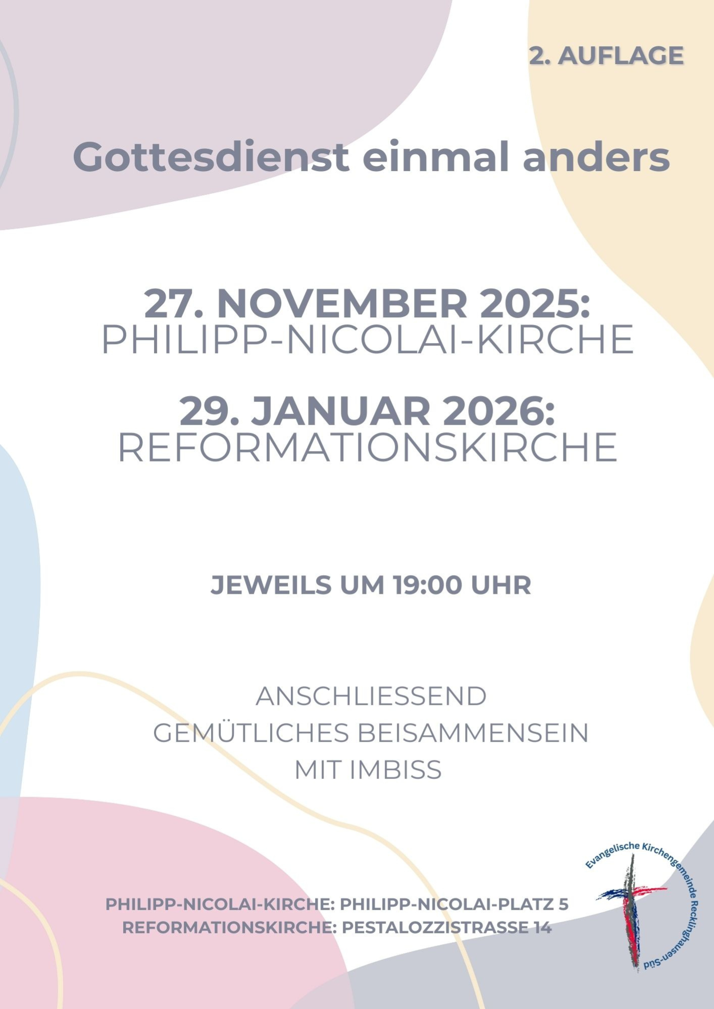 Am 27.11 ist der nächste Termin für den Gottesdienst einmal anders. Ebenfalls Können Sie sich auch schonmal den 19.01. merken.
