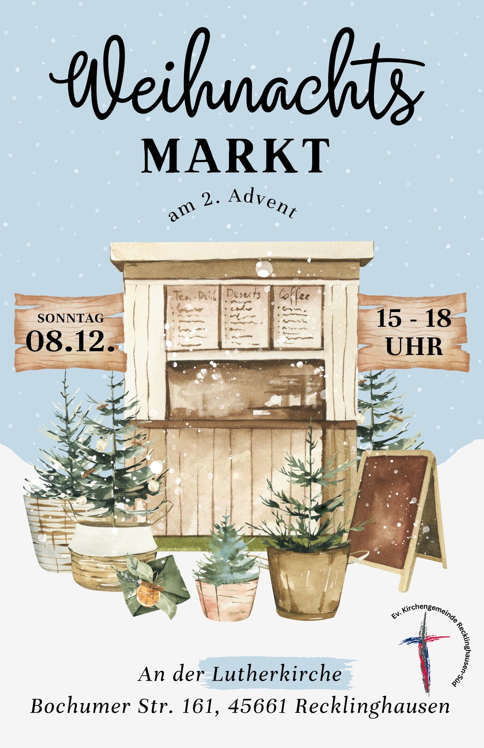 Nach der erfolgreichen Premiere im vergangenen Jahr hat das Weihnachtsmarkt-Team der Evangelischen Kirchengemeinde Recklinghausen-Süd erneut einen adventlichen Markt an der Lutherkirche in der Bochumer Straße (Nr. 161) vorbereitet.